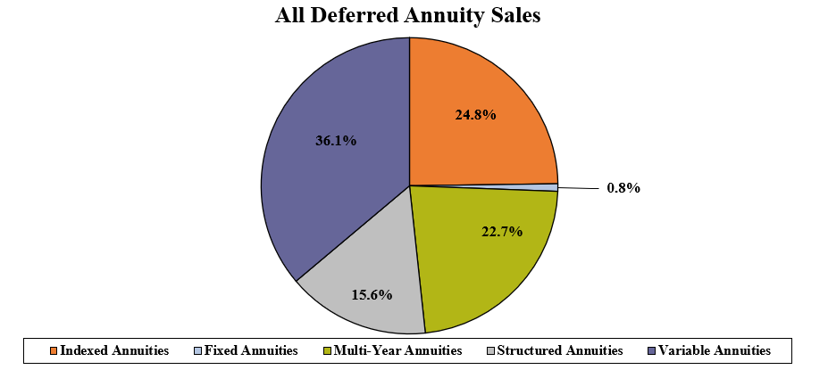 Total first quarter sales for all deferred annuities were $58.1 billion; an increase of 3.2% when compared to the previous quarter and an increase of 10.3% when compared to the same period last year. Total deferred annuities include the variable annuity, structured annuity, indexed annuity, traditional fixed annuity, and MYGA product lines.