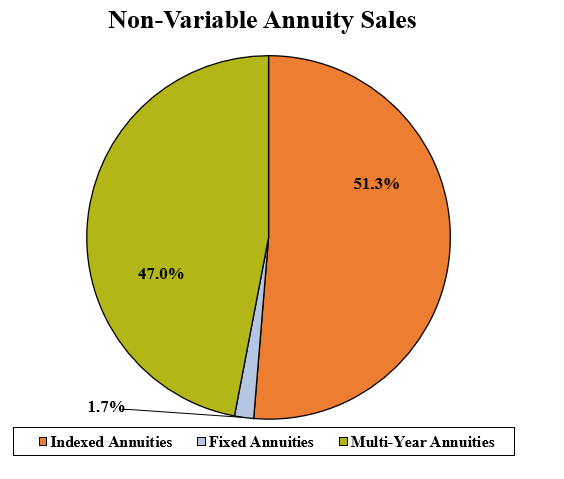 Total first quarter non-variable deferred annuity sales were $28.0 billion; down 2.8% when compared to the previous quarter and up 5.8% when compared to the same period last year. Non-variable deferred annuities include the indexed annuity, traditional fixed annuity, and MYGA product lines.